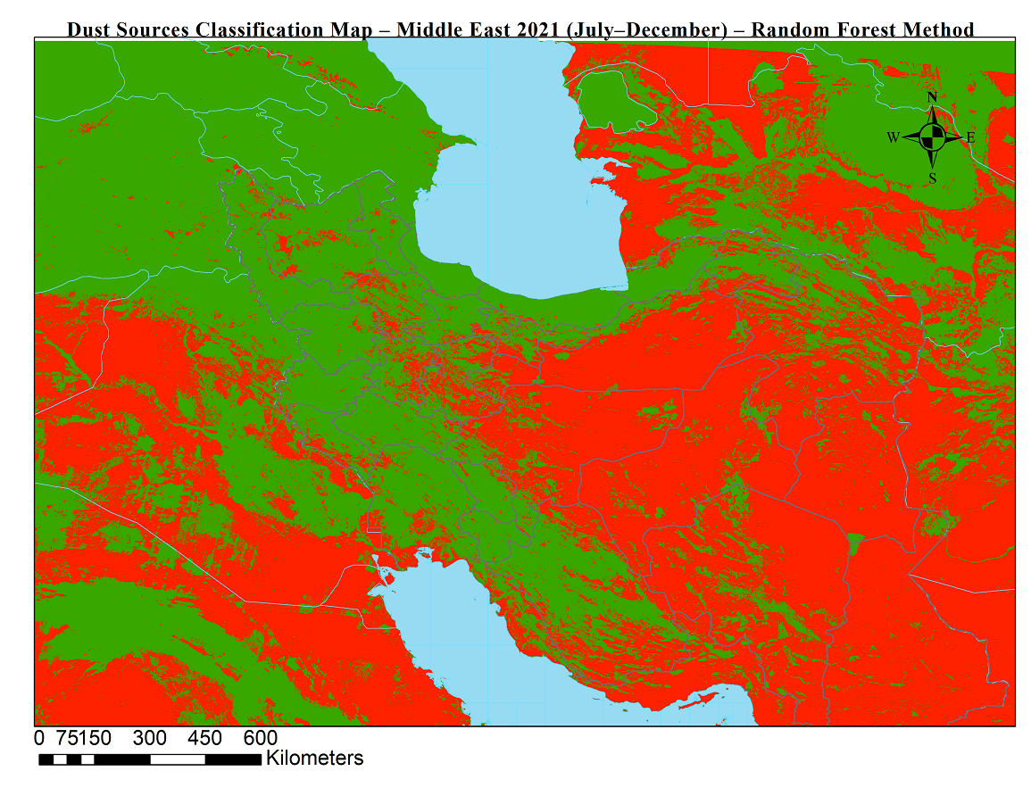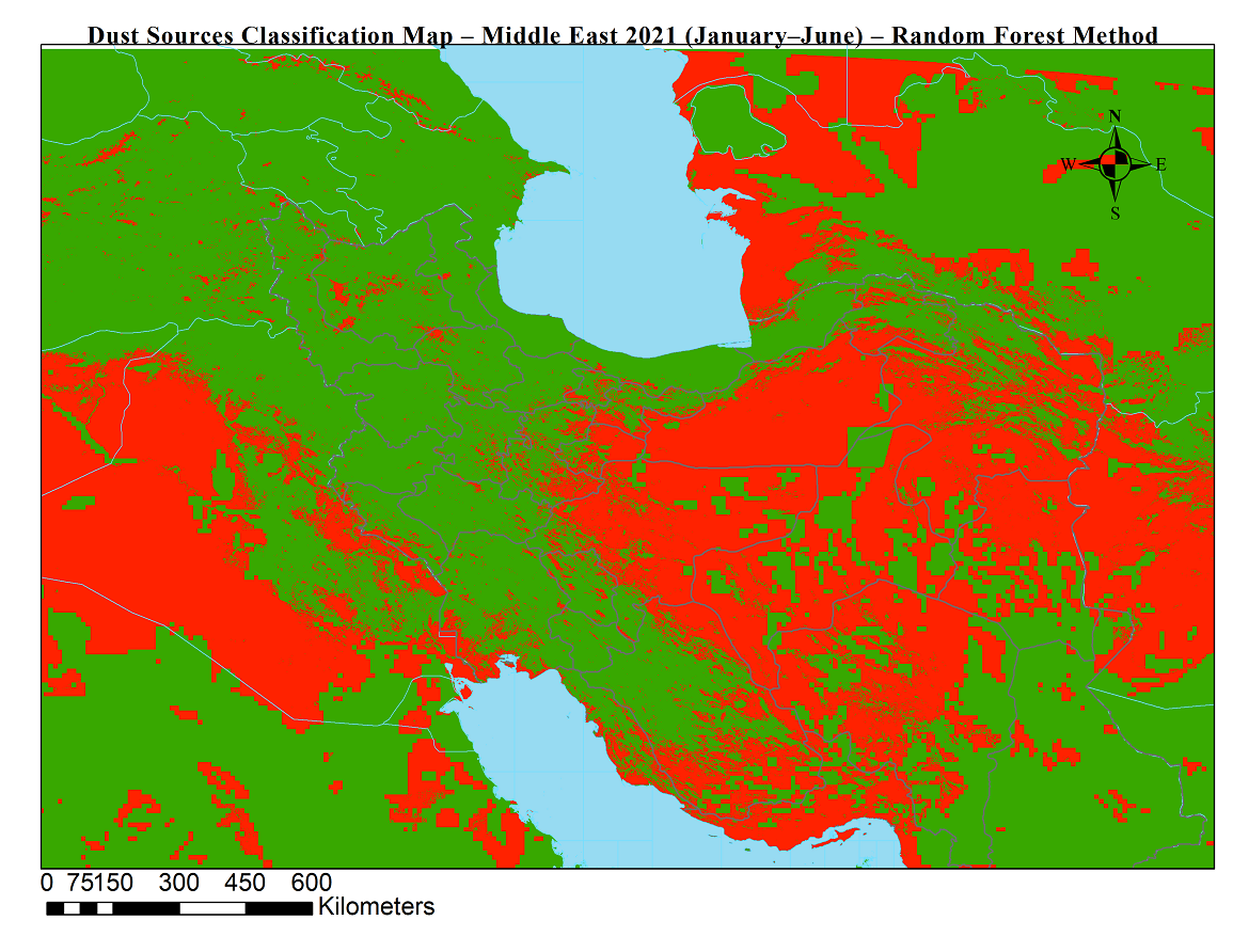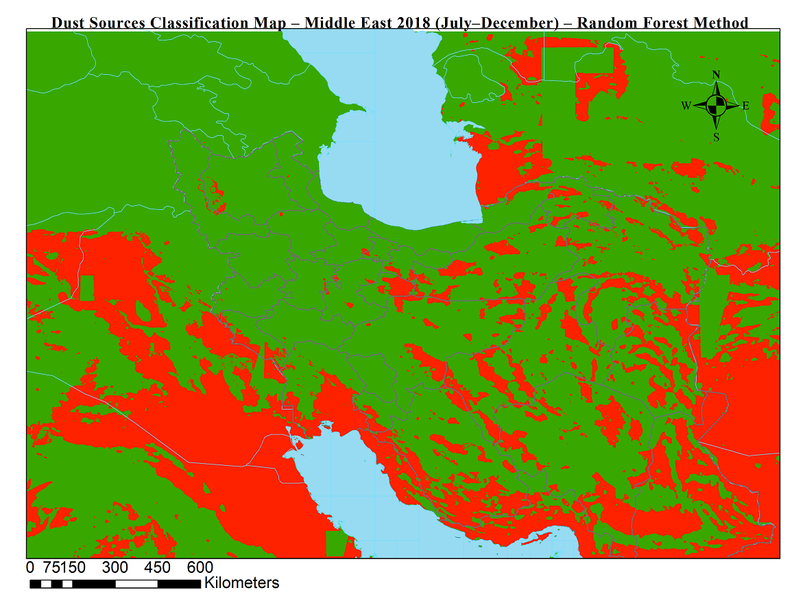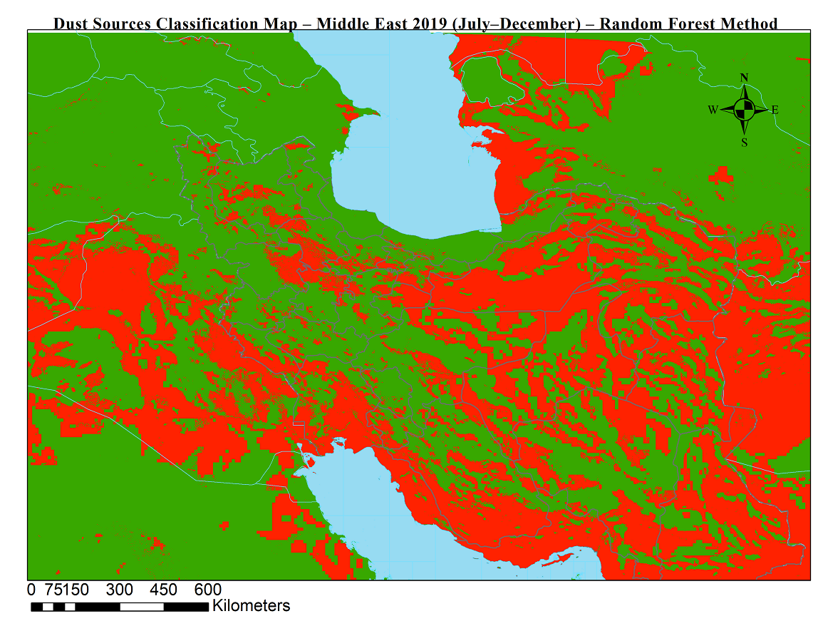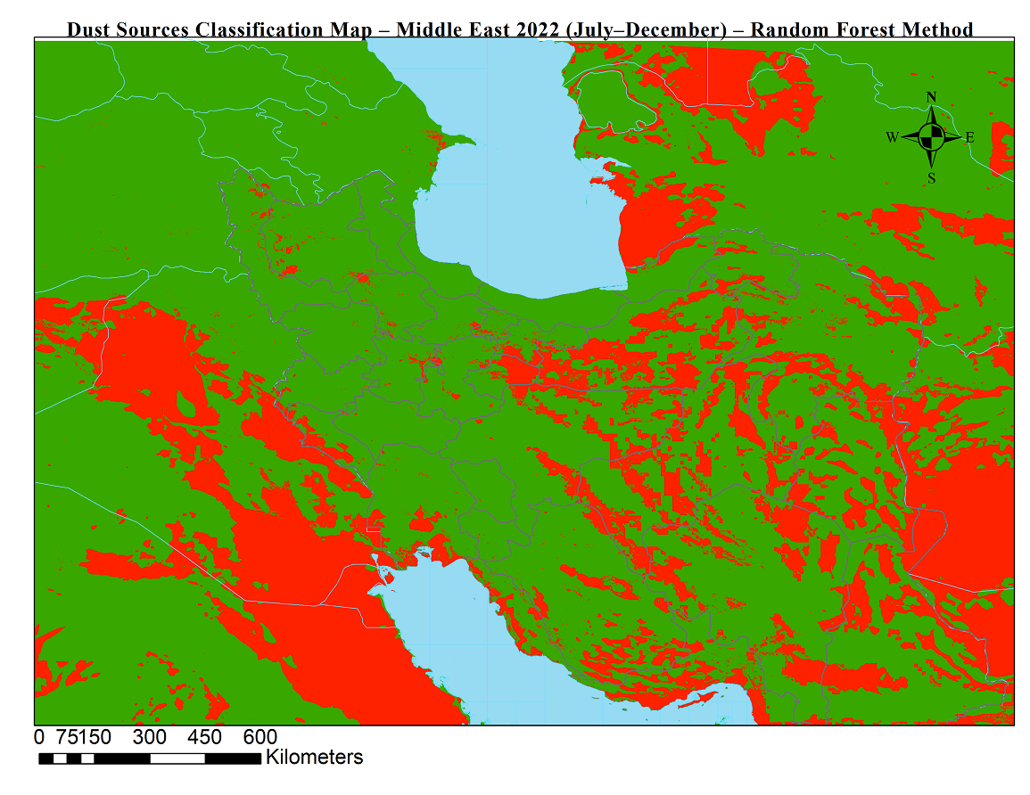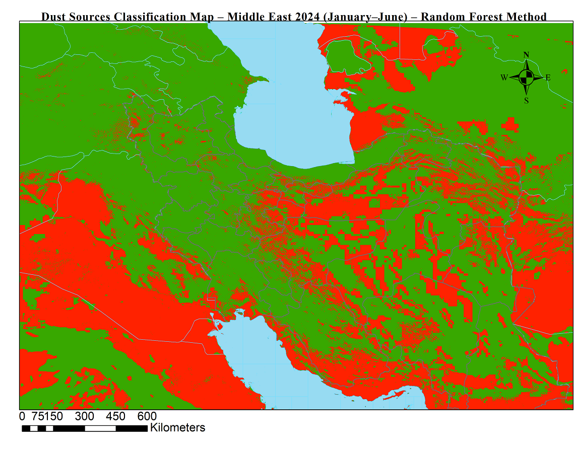 شناسایی موقعیت جغرافیایی چشمه های گردوخاک نقش بسزایی در پایش و پیش بینی طوفان های گردوخاک دارد. در این محصولات با استفاده از دادههای ماهوارهای (سنجش از دور) و الگوریتم جنگل تصادفی، چشمههای فعال تولید گردوخاک در خاورمیانه برای بازههای ششماهه شناسایی و طبقهبندی شدند.
